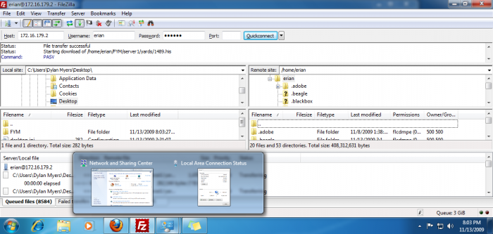 Basic shot with FireFox opened Shot with FileZilla opened up, and mouse hovering over the system group on the taskbar (yes, things are grouped!!) and showing the pop up window with the 2 system windows I had opened And finally a shot with everything minimize and the sticky note gadget opened on my desktop I'll have more shots later when I have time to play more! I've gotta get off this damned computer soon so I can go watch Stargate Universe.