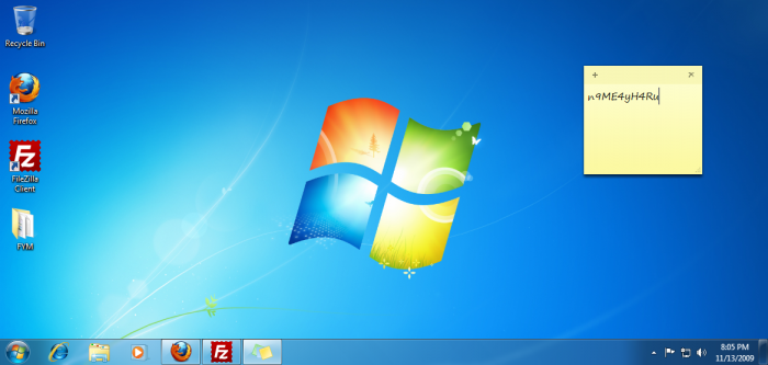 And finally a shot with everything minimize and the sticky note gadget opened on my desktop